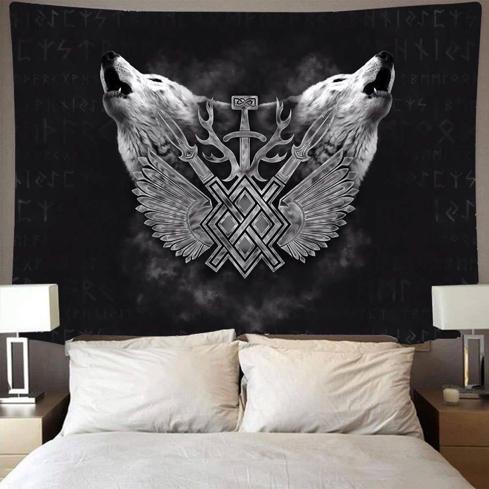 WeltNordischer Wikinger-Wölfe- Rune -Wandteppich