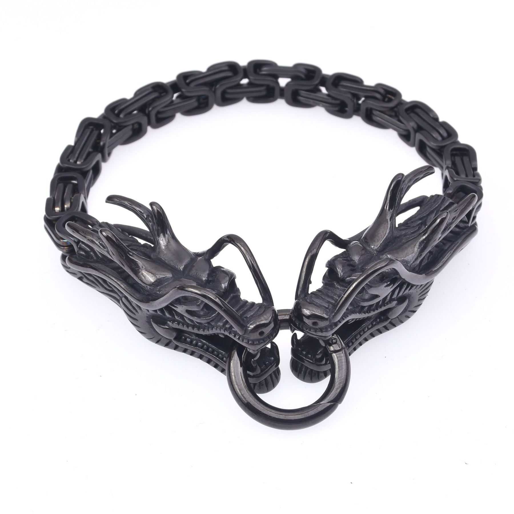 Die detailreichen Drachenköpfe auf diesem Armband sind nicht nur faszinierende Darstellungen des Ouroboros, sie verkörpern auch die Stärke, Kraft und Weisheit, die in nordischen Legenden mit Drachen in Verbindung gebracht werden. Diese Fabelwesen wurden oft als Wächter von Schätzen und Portalen zu anderen Welten angesehen und verleihen diesem Schmuckstück eine mysteriöse und fantastische Note.