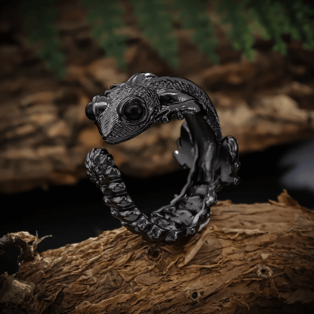 WorldNorse – Schwarzer Ring mit Pistole in Echsenform
