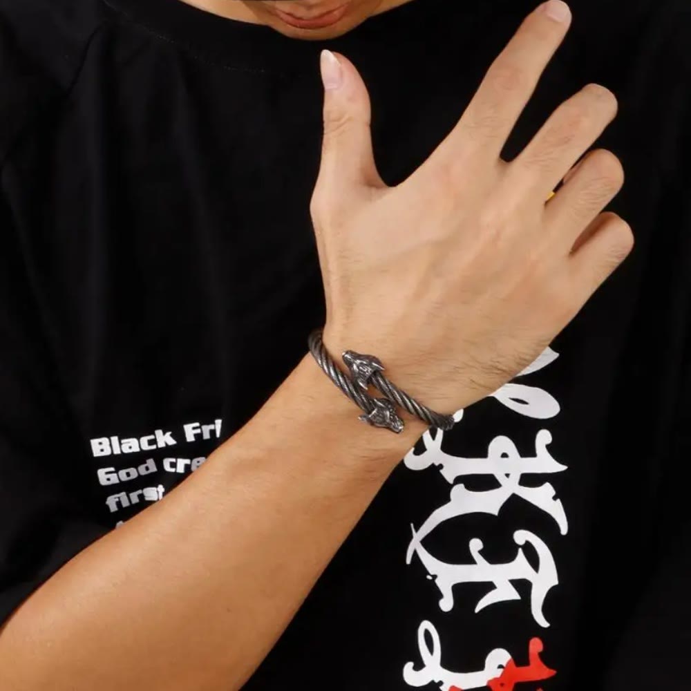 WorldNorse Wolf Gedrehtes offenes Armband