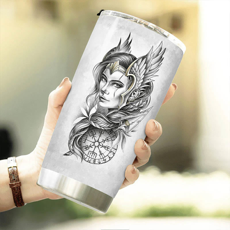Entdecken Sie uralten Zauber mit unserer Trinkbecher-Kollektion! Gefertigt aus hochwertigem Edelstahl und mit lebensmittelechtem 304-Edelstahl ausgekleidet, spiegelt unser Becher die Kunstfertigkeit legendärer nordischer Schmiede wider. Er ist mehr als nur ein Becher – er ist ein Stück nordischer Mythologie. Dank doppelwandiger Isolierung hält er Ihre Lieblingsgetränke den ganzen Tag lang warm oder kalt. Der ergonomisch geformte, auslaufsichere Deckel lässt sich mit einem einzigen Druck öffnen und schließen und ist somit bequem mit nur einer Hand zu bedienen. Sein einzigartiges, von der nordischen Mythologie inspiriertes Design macht ihn zu einem außergewöhnlichen Geschenk und einem Statement für jeden modernen Krieger.