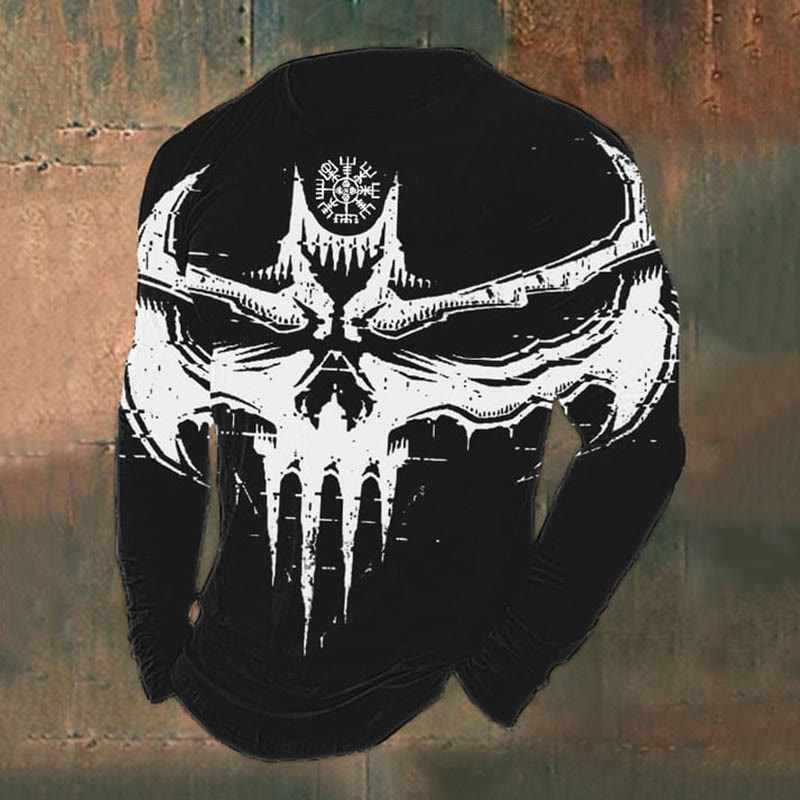 WorldNorse – Langes T-Shirt mit Fledermausdämon Vegvisir -Aufdruck