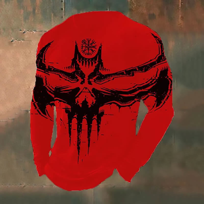WorldNorse – Langes T-Shirt mit Fledermausdämon Vegvisir -Aufdruck - Rot - US/UK/AU50, EU60 (5XL) - image 3