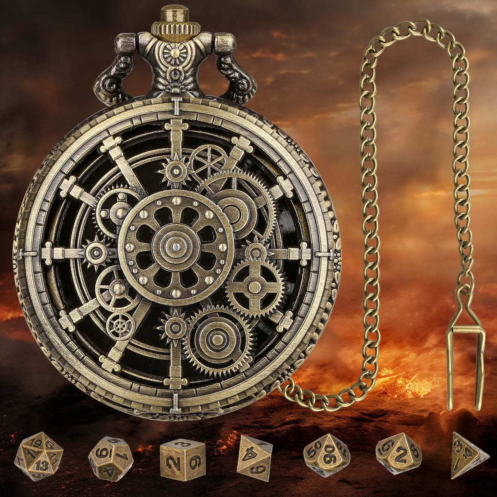 WorldNorse Steampunk Gears Würfel Set Taillenkette - Taschenuhrgehäuse + Kette + Würfel - Gold - image 5